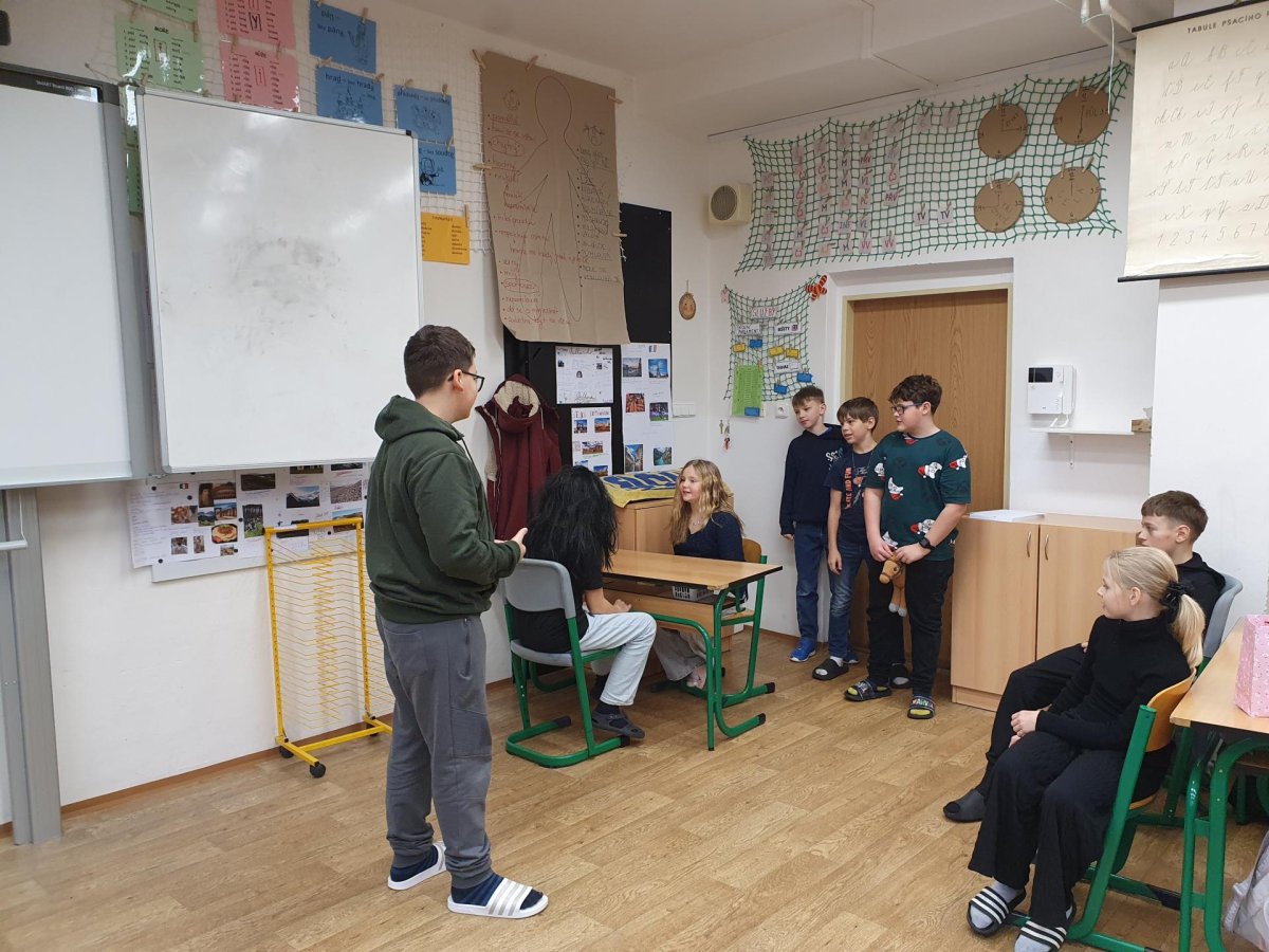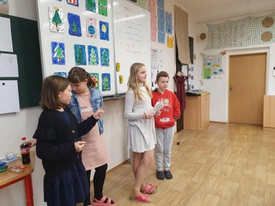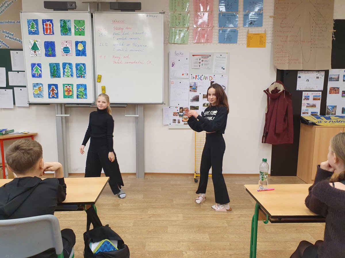 Prožili jsme naši poslední společnou vánoční besídku. Každý přidal ruku k dílu a tak jsme si užili pestrý asi hodinový program. Zpívalo se, tančilo, hráli jsme Kahoot, viděli několik scének, ... Moc hezké to bylo!