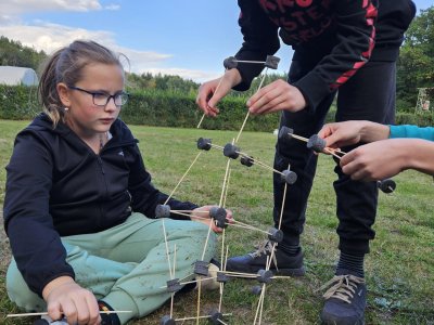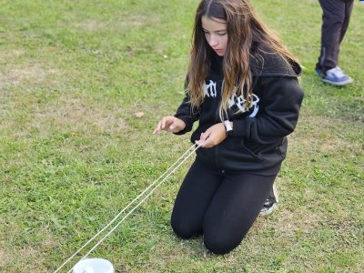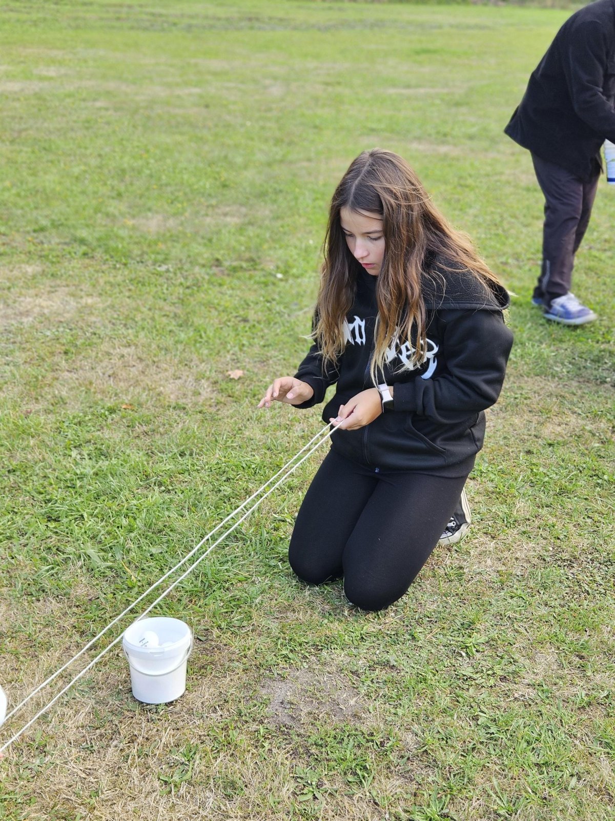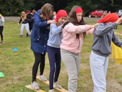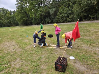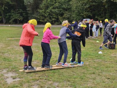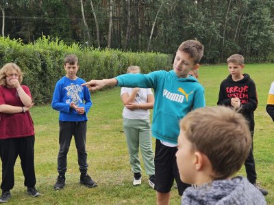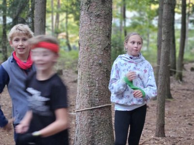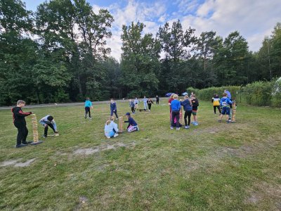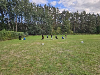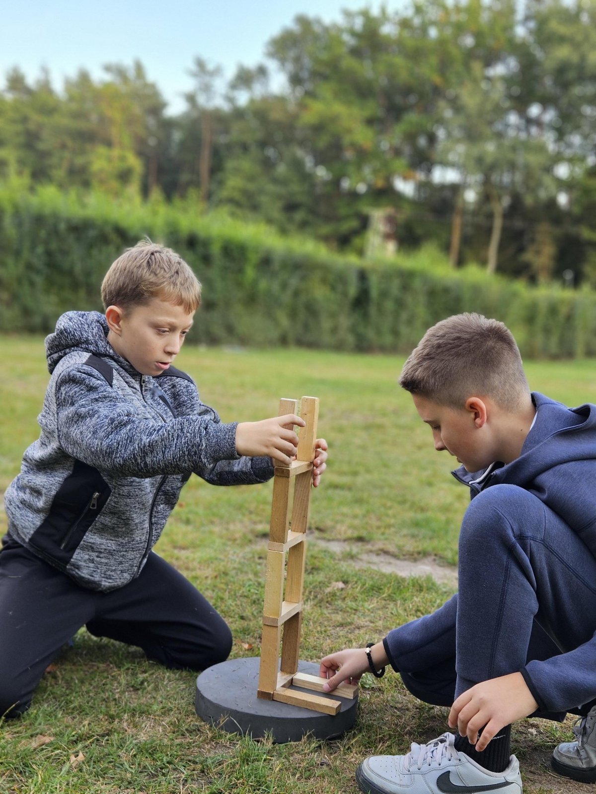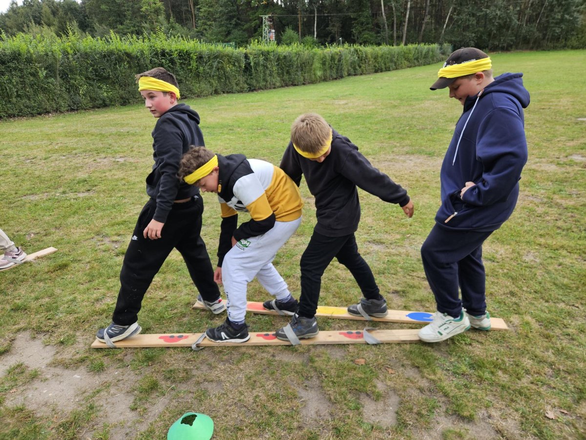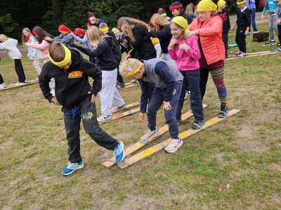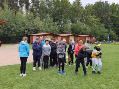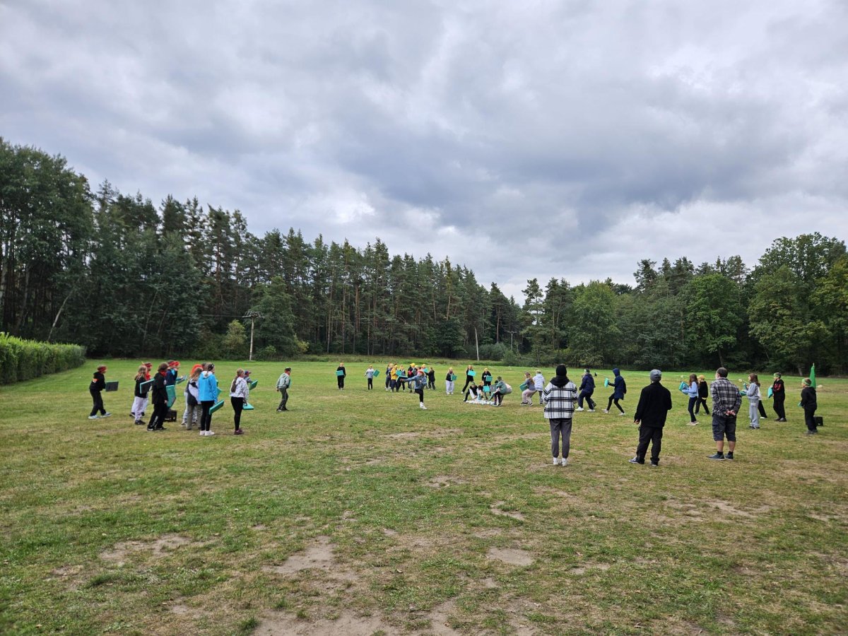 Adaptační kruz jsme zahájili v pondělí na nádraží v Chocni, kde jsme předali kufry a vyrazili vlakem směr Čermná nad Orlicí. Tam jsme vystoupili a pěšky se vydali úctyhodných 11 kilometrů do Horního Jelení a dále do rekreačního zařízení Tramtáryje. Bylo krásné počasí a všichni cestu zvládli na jedničku. I přes únavu po dlouhé cestě jsme se hned po obědě vrhli na první z programů, který cílil na stmelení kolektivu a spolupráci. Žáci si vyzkoušeli například stavění věží za pomoci provázku nebo střílení prakem.