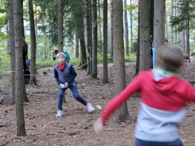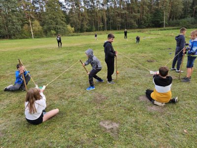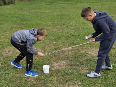 V úterý někteří odvážnější z nás zahájili den ranní rozcvičkou, jiní o chvíli později výbornou snídaní. Dopoledne jsme strávili opět hrami na stmelení kolektivu a také tvorbou třídních pravidel. Po obědě následoval velký závod na "lyžích" a trénink na závěrečnou bitvu. Před bitvou si ještě žáci procvičili svoji pamět, když se snažili zapamatovat si básničky a přenést je svým kapitánům. A pak to přišlo - finálová bitva. Za zvuku hudby se o vítězství utkalo pět týmů. Všichni bojovali statečně a bitvu si užili. Večer už následoval jen klidný program ve formě psaní dopisu svému budoucímu já. Své dopisy děti dostanou v deváté třídě a kdo ví, třeba je ještě překvapí, co si samy napsaly. Den však ještě neskončil, jen co se setmělo, čekala na děti ještě stezka odvahy, kterou všichni také statečně zvládli.