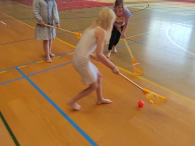 Lakros je kolektivní sport pocházející od severoamerických indiánů. Dva týmy hrají na hřišti s lakrosovými holemi se síťkou, ve kterých hráči nosí míček, přihrávají si a snaží se jím trefif do branky. Naši žáci měli možnost si vyzkoušet tréninkovou část zručnosti práce s holí a míčkem, herní aktivity v menších skupinkách a vlastní hru. Hole určené pro děti nemají síťku, ale barevnou plastovou horní část. Všichni si tuto netradiční hru hned oblíbili. Třeba se od příštího školního roku stane naší novou sportovní aktivitou.