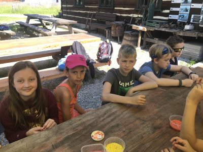 V areálu jsme viděli stavby lidové architektury přenesené z původních lokalit Královehradecka a podhůří Orlických hor, ale i obnovené stavby např.: hostinec na "Špici", roubené stavení, roubený vodní mlýn, větrný mlýn, kovárnu, kočárkárnu, roubenou sýpku ... . Nechyběly ukázky vybavení domácností, dobových řemesel, strojů, pracovních nástrojů a nářadí potřebných k životu předešlých generací. Seznámili jsme se i s tradičním řemeslem drátkování, kde si každý z drátku a korálků vyrobil vážku.